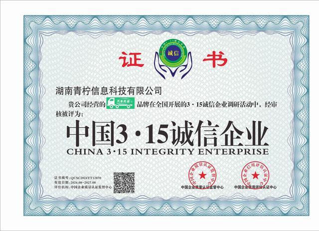 荣获“3.15诚信企业”,对青柠运车而言,既是荣誉,更是责任。